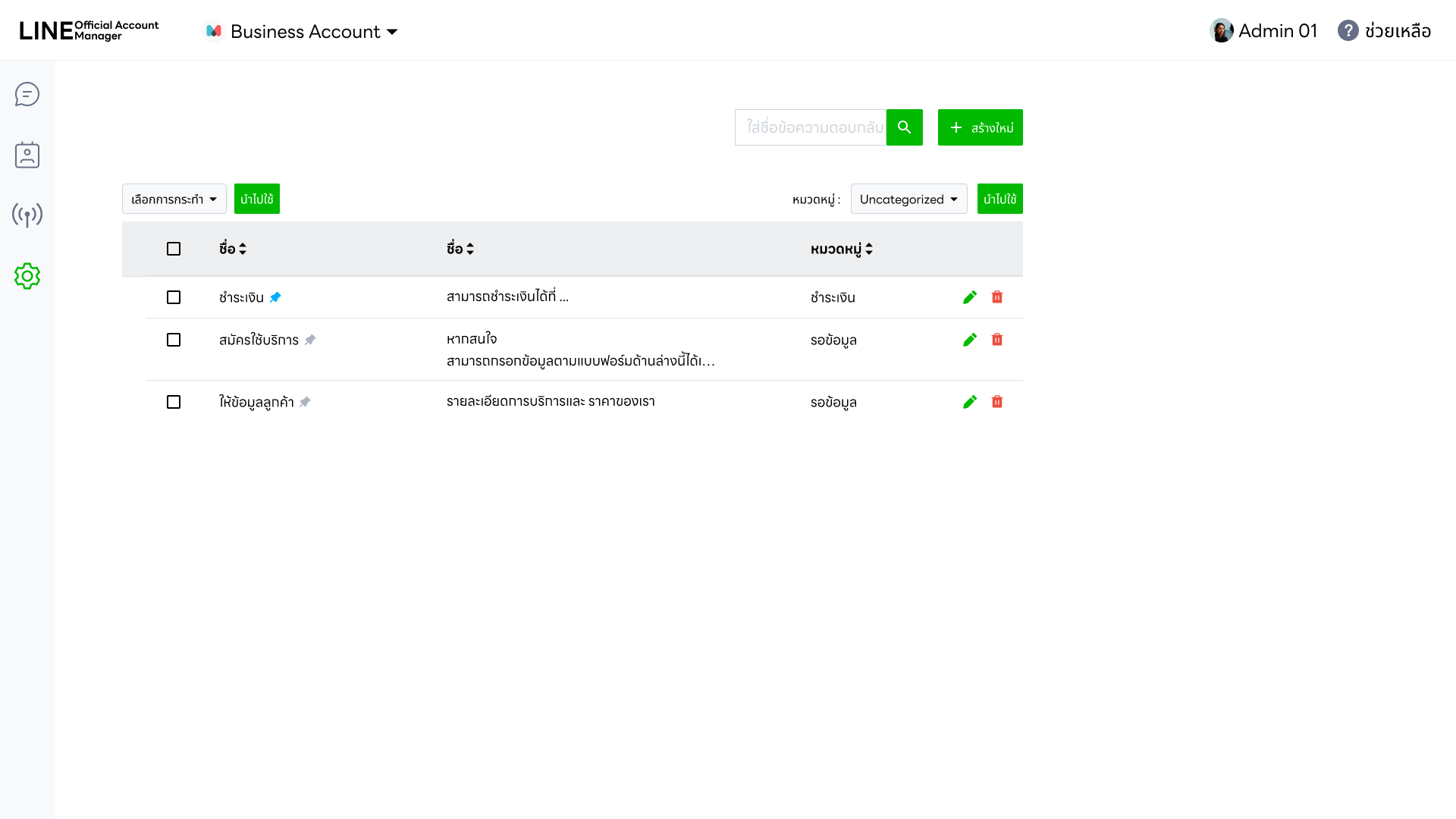 01. เพิ่มตัวเลือกในการจัดเรียงข้อความตอบกลับให้หลากหลายขึ้น หรือ สามารถจัดเรียงข้อความตอบกลับ ที่ต้องการใช้ได้ด้วยตัวเอง